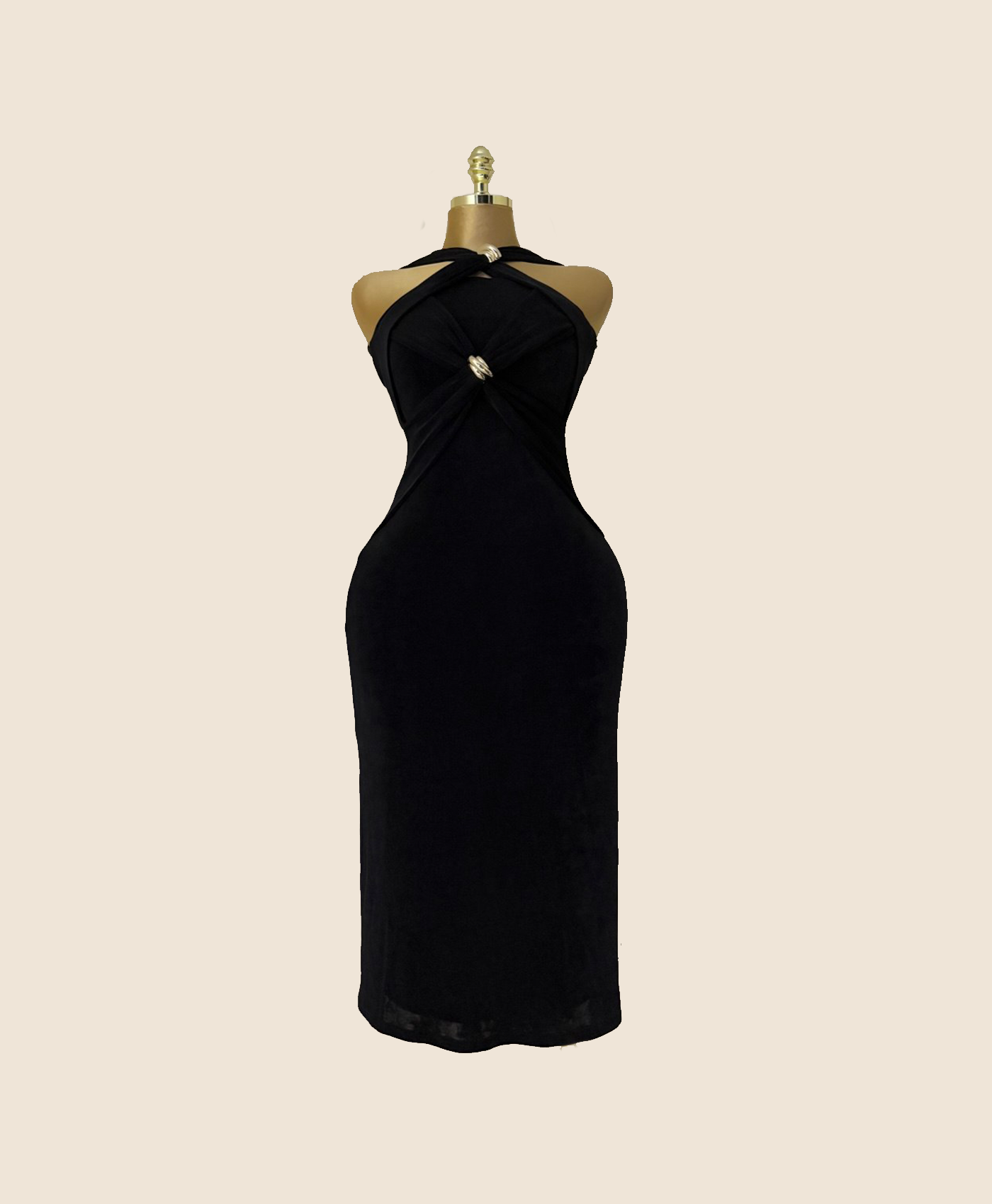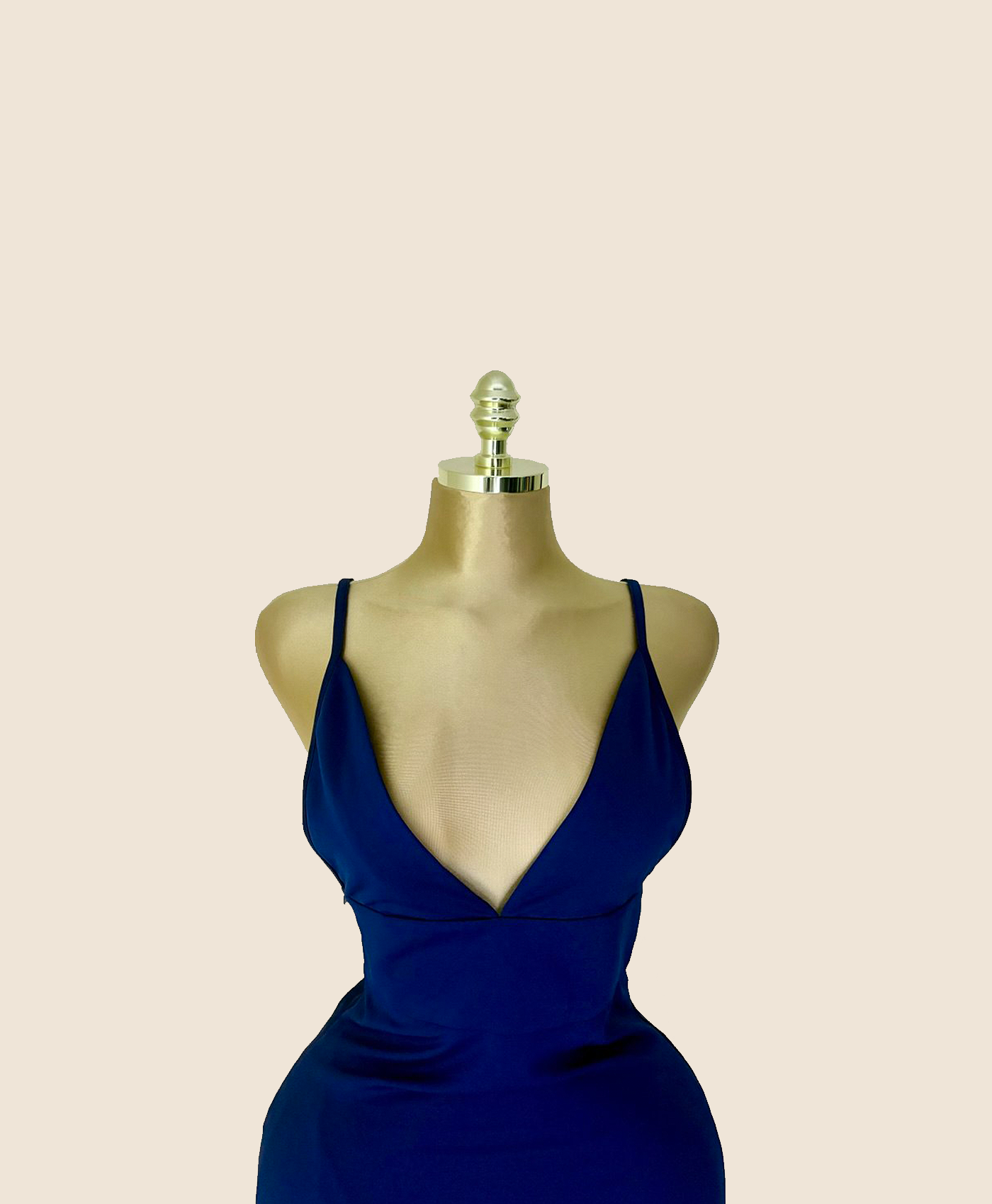 Classic Navy Blue Sleeveless Strap Midi Dress