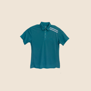 A lightweight, performance-style polo shirt in a refreshing turquoise blue shade. Features a three-button placket, chest pocket, and contrasting white stripes on the shoulder for a sporty finish. Crafted from quick-dry, breathable fabric ideal for golf, casual wear, or summer outings.