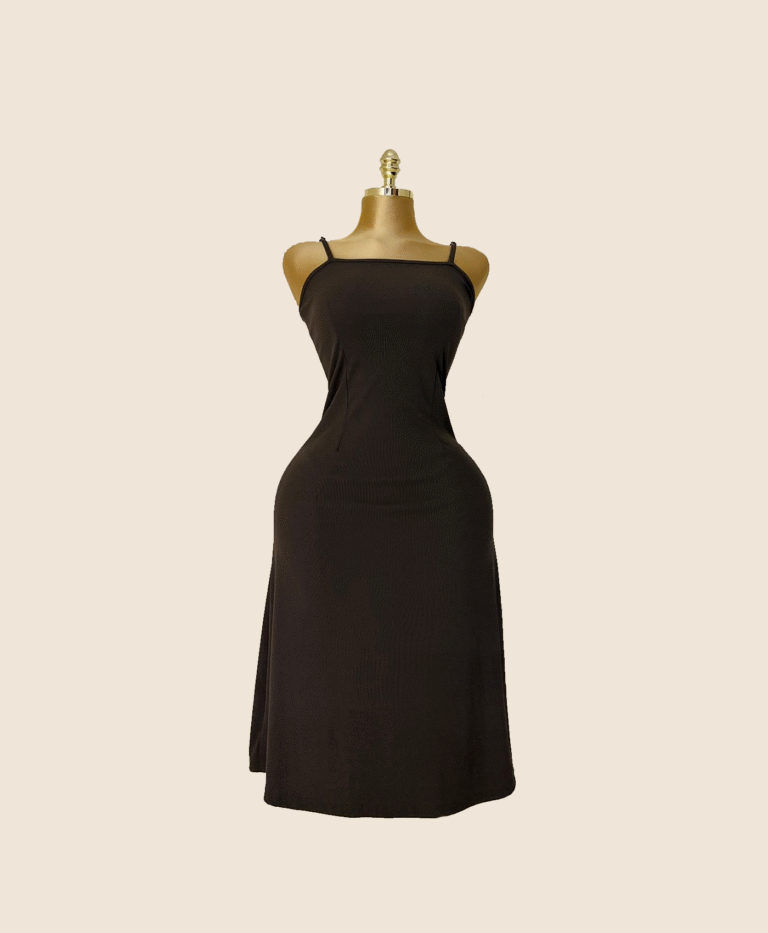 A timeless slip dress in rich cocoa brown, crafted from a soft, flowing fabric that gracefully skims the silhouette. With delicate spaghetti straps and a mid-length cut, the Cocoa Whisper dress captures minimalist sophistication — perfect for both quiet evenings and elevated daywear.